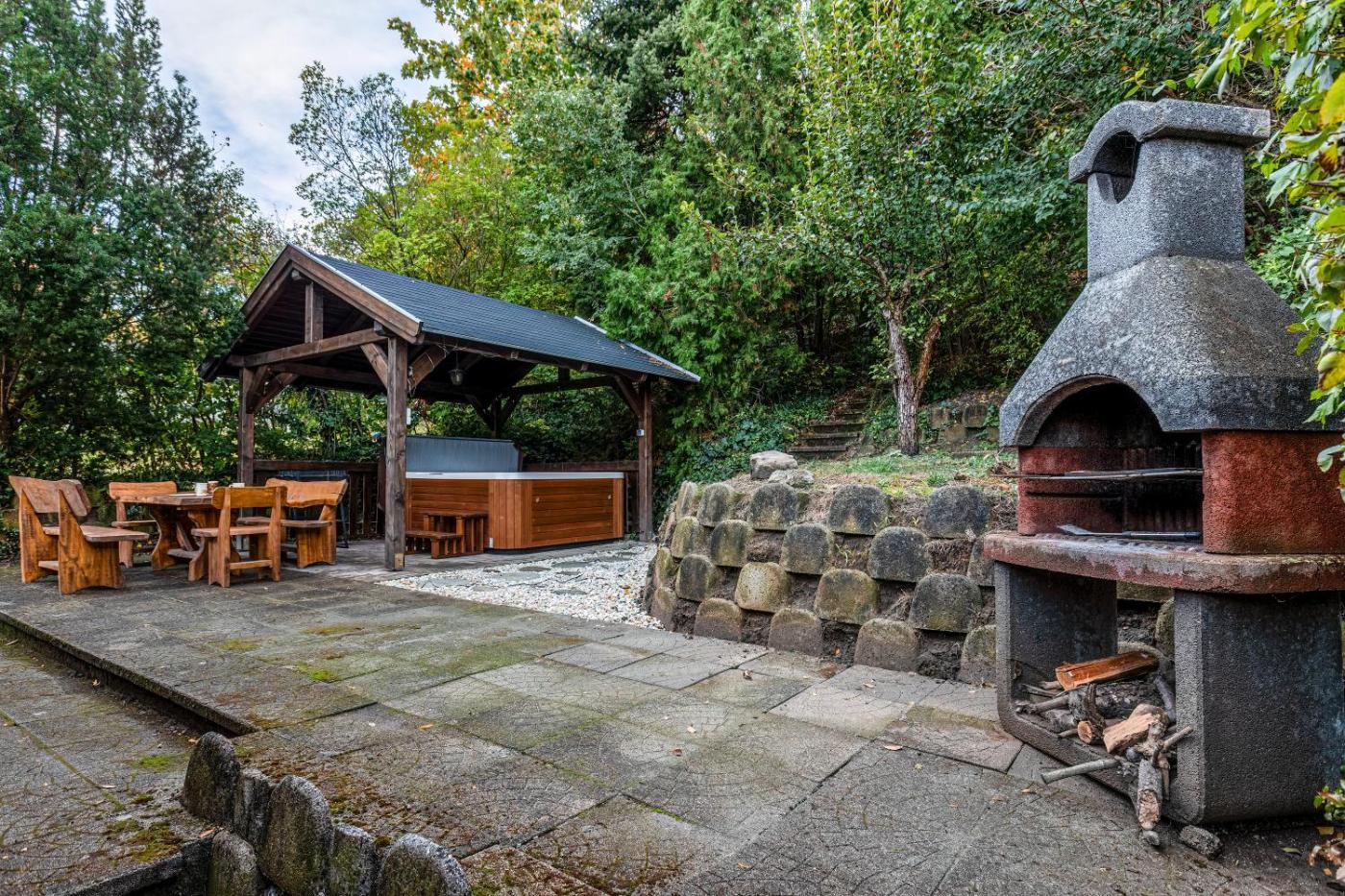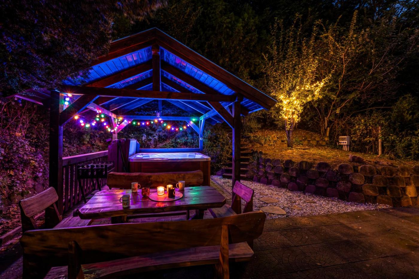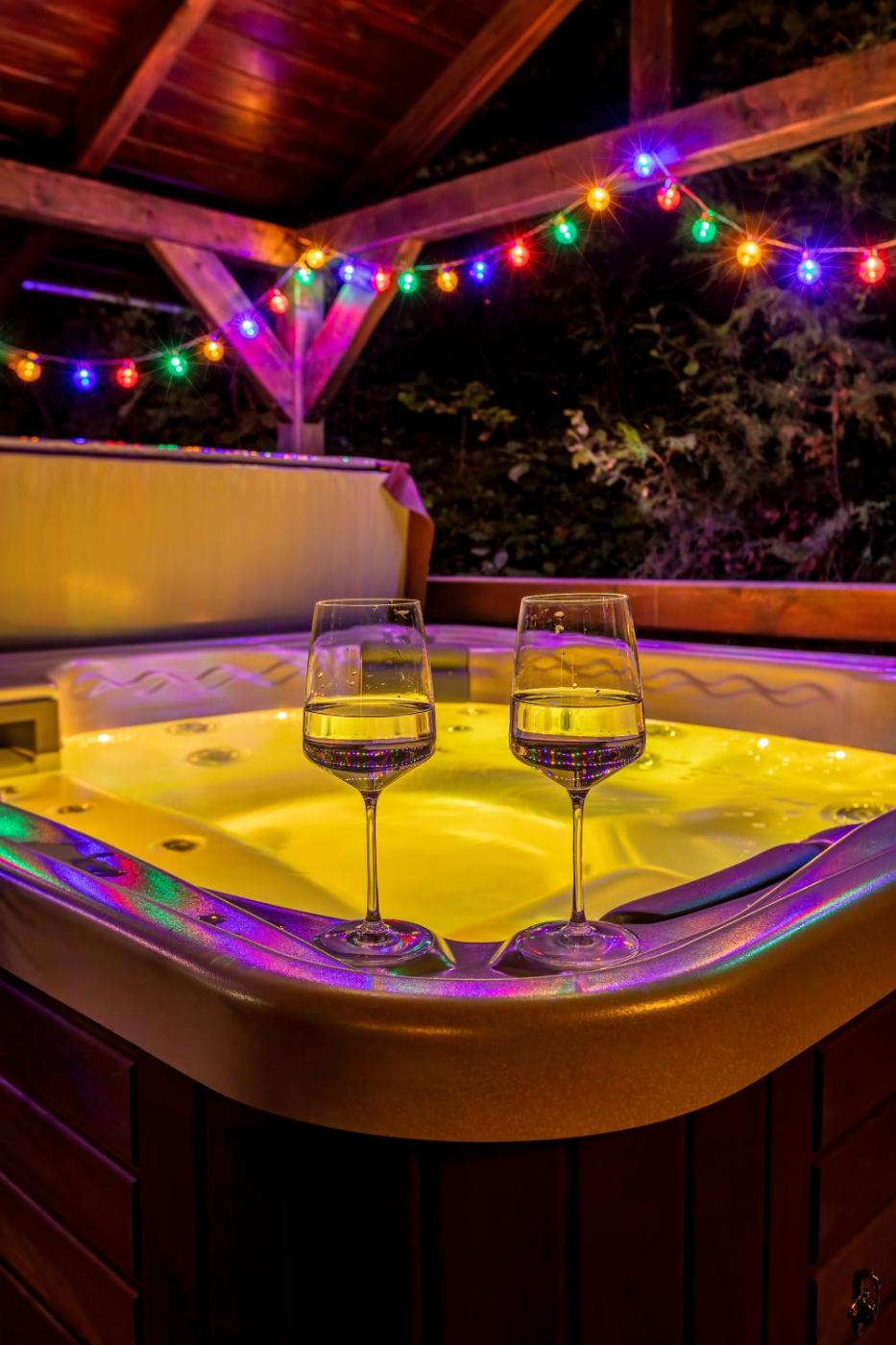 Two-Bedroom House. This holiday homes standout feature is the hot tub. In the fully equipped kitchen, guests will find a stovetop, a refrigerator, a dishwasher and an oven. The air-conditioned holiday home offers a flat-screen TV with streaming services, a washing machine, a tea and coffee maker, a dining area as well as garden views. The unit has 4 beds.