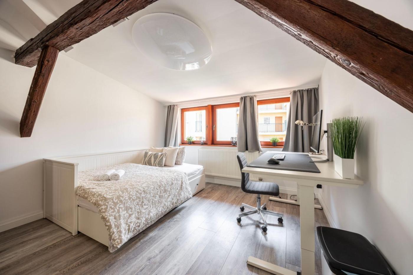 Four-Bedroom Apartment with Balcony. Boasting a private entrance, this air-conditioned apartment includes 1 living room, 4 separate bedrooms and 1 bathroom with a bath and a shower. In the fully equipped kitchen, guests will find a stovetop, a refrigerator, a dishwasher and kitchenware. The spacious apartment offers a washing machine, soundproof walls, a seating area as well as a terrace with ancourtyard view. The unit has 4 beds.
