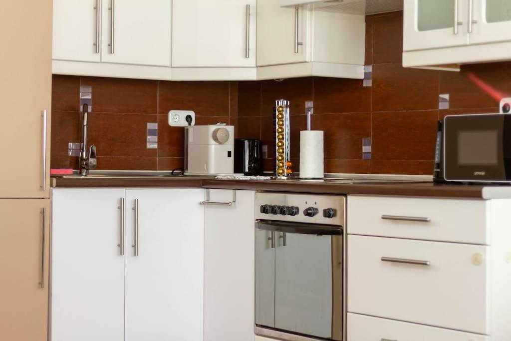 Three-Bedroom Apartment. Boasting a private entrance, this air-conditioned apartment comes with 1 living room, 3 separate bedrooms and 1 bathroom with a bath or a shower and a hairdryer. In the well-fitted kitchen, guests will find a stovetop, a refrigerator, an oven and a microwave. The spacious apartment features a washing machine, a tea and coffee maker, a dining area, heating, as well as a flat-screen TV. The unit has 4 beds.