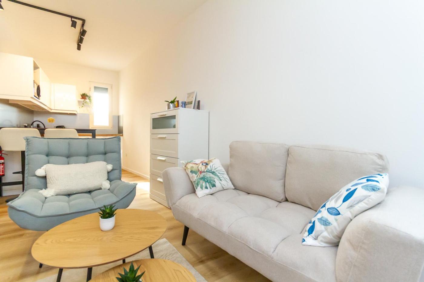 One-Bedroom Apartment. Featuring a private entrance, this air-conditioned apartment comprises a kitchen, 1 bedroom and 1 bathroom with a bath or a shower and a hairdryer. The fully equipped kitchen features a stovetop, a refrigerator, kitchenware and an oven. The apartment provides a washing machine, a coffee machine, a wardrobe, heating, as well as a flat-screen TV. The unit offers 1 bed.