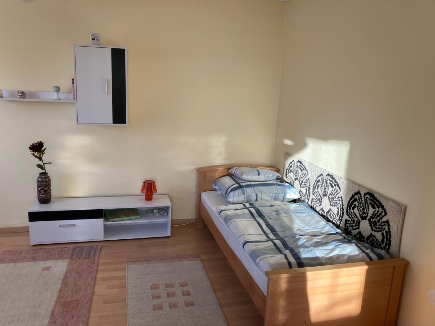 Two-Bedroom Apartment. Boasting a private entrance, this air-conditioned apartment features 1 living room, 2 separate bedrooms and 1 bathroom with a shower and a hairdryer. Guests can make meals in the kitchen that has a stovetop, a refrigerator, kitchenware and an oven. The spacious apartment features a washing machine, a tea and coffee maker, a wardrobe as well as a terrace with garden views. The unit has 5 beds.