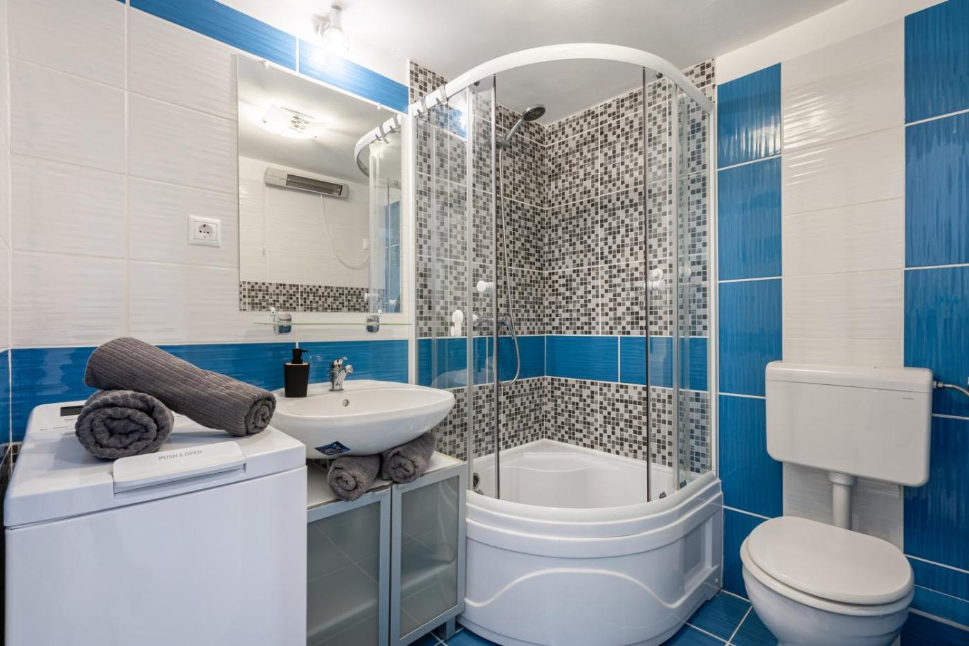 One-Bedroom Apartment. Featuring a private entrance, this air-conditioned apartment is comprised of 1 living room, 1 separate bedroom and 1 bathroom with a shower and a hairdryer. Meals can be prepared in the well-fitted kitchen, which is fitted with a stovetop, a refrigerator, kitchenware and an oven. The apartment is furnished with a desk and a seating area and offers a washing machine, a tea and coffee maker and ancourtyard view. The unit offers 2 beds.