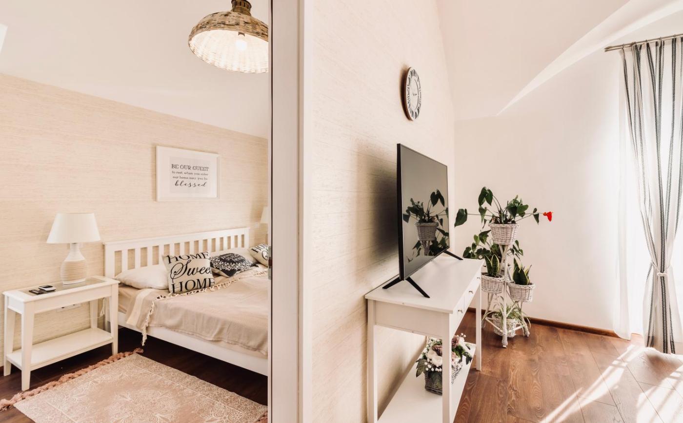 One-Bedroom Apartment. This air-conditioned apartment consists of 1 living room, 1 separate bedroom and 1 bathroom with a shower. Guests can make meals in the kitchen that is equipped with a stovetop, a refrigerator, a dishwasher and kitchenware. The apartment provides a washing machine, a tea and coffee maker, a dining area, a flat-screen TV with streaming services, as well as city views. The unit offers 2 beds.