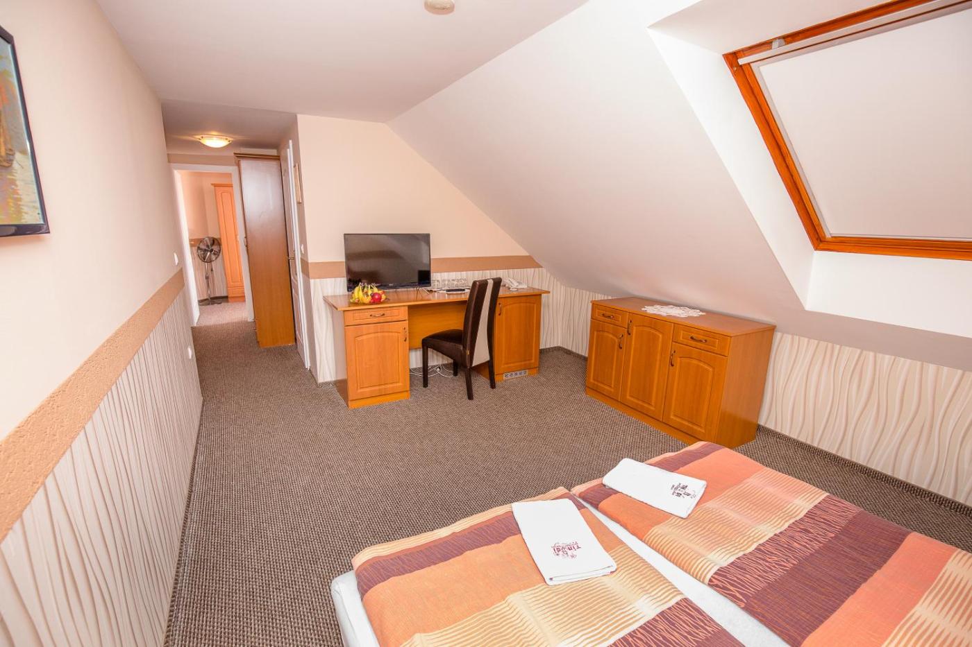 Tinódi Fogadó’s rooms offer carpeted floors and, cable TVs and mini fridges. Some rooms are located on the attic and feature skyline windows.