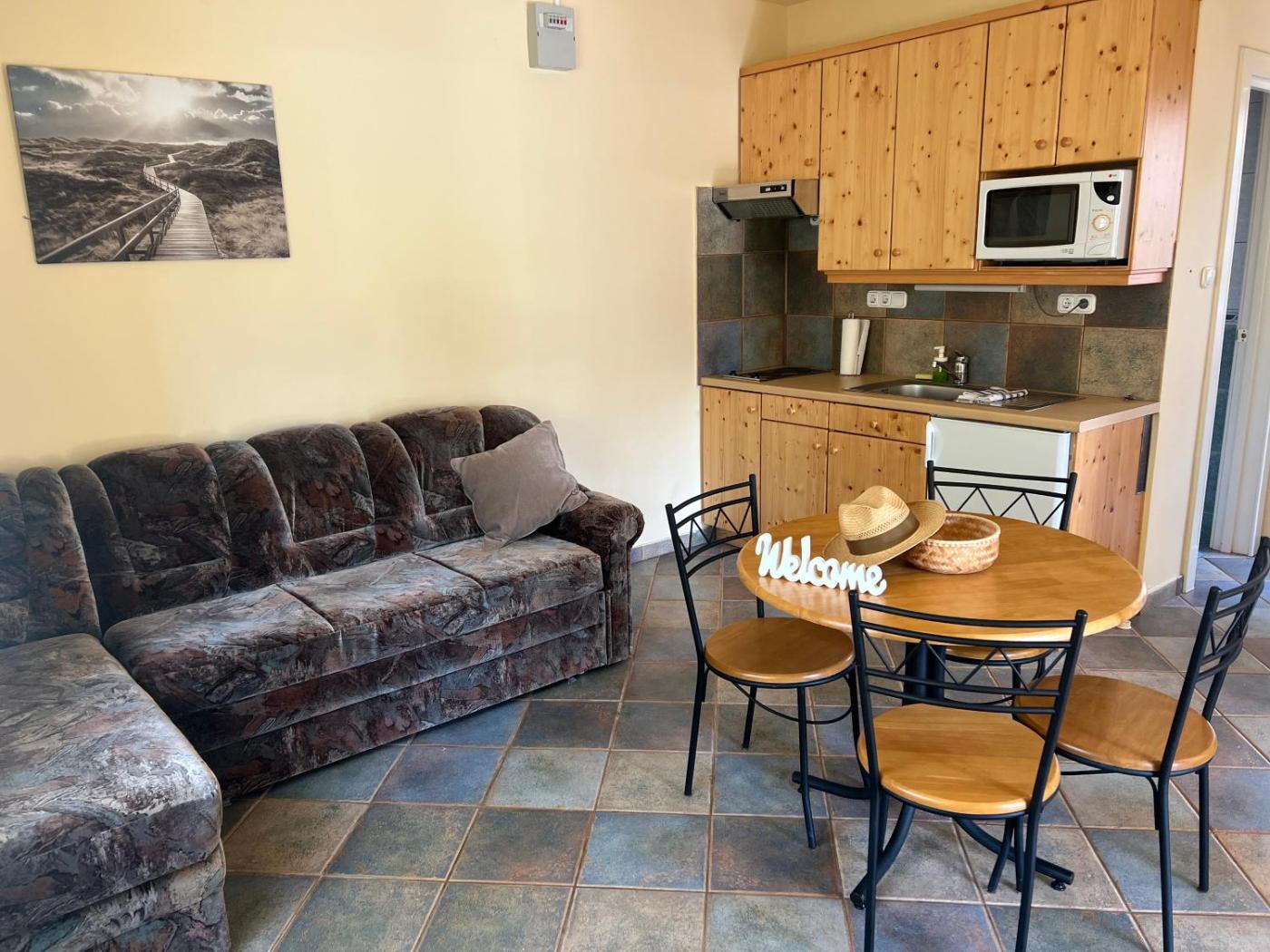 Two-Room Apartment. Featuring a private entrance, this air-conditioned apartment consists of 1 living room, 2 separate bedrooms and 1 bathroom with a shower. Meals can be prepared in the well-fitted kitchen, which is equipped with a stovetop, a refrigerator, kitchenware and a microwave. Boasting a terrace with garden views, this apartment also provides a tea and coffee maker and a flat-screen TV with satellite channels. The unit offers 4 beds. ;