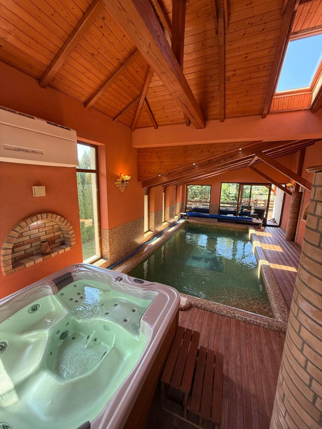 Boasting air-conditioned accommodation with a private pool, mountain view and a terrace, Vadászvilla is situated in Úrkút. This property offers access to a balcony and free private parking. The villa has an indoor pool, hot tub and a shared kitchen.